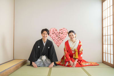 猪目窓といわれるハートの窓か掛け軸を背景にするかお選びいただけます。