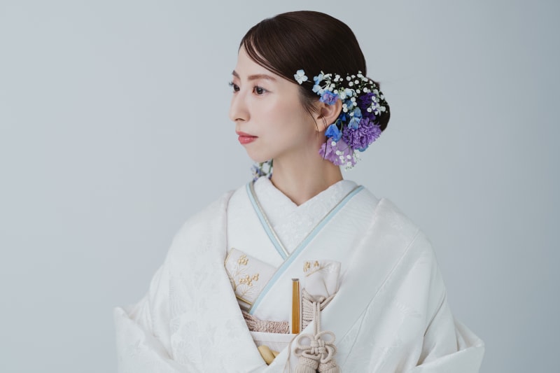 着物のコーディネートと合わせて顔周りが華やかになるように飾り付けしてます☆