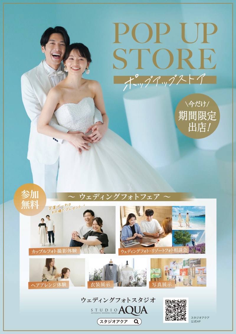 ウェディングフォト専門スタジオアクアは、高崎にて期間限定のポップアップイベントを開催いたします!