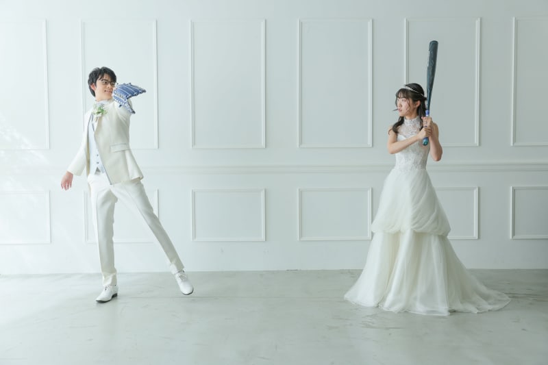 野球観戦がお好きなご新郎様とソフトボールをされていたご新婦様。