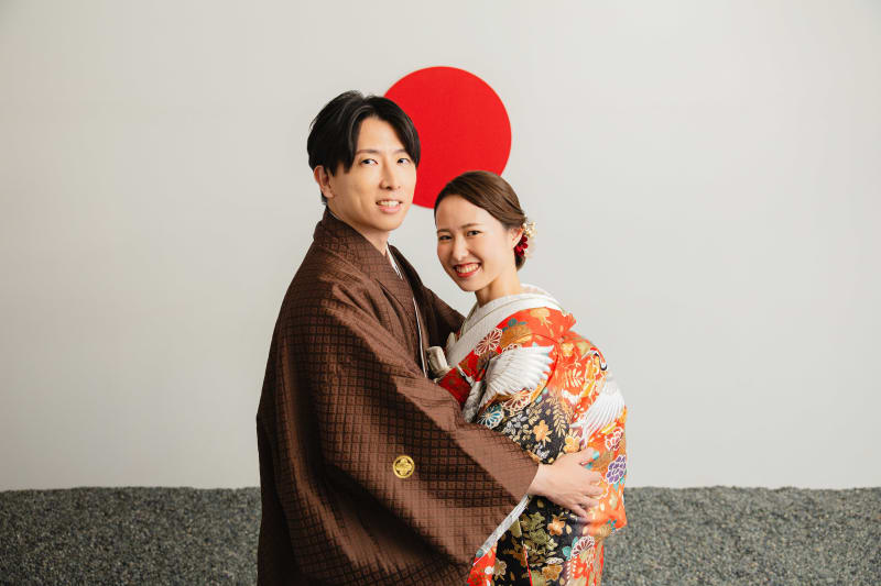日の丸背景に、おふたりの仲良しショットを。可愛い表情でバッチリでした!!!