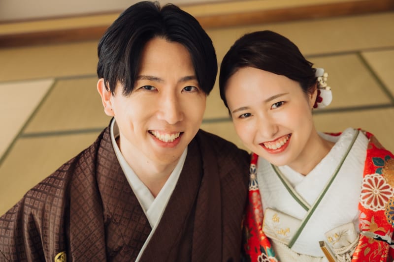 寄り添ったおふたりの笑った表情がより伝わる一枚に。