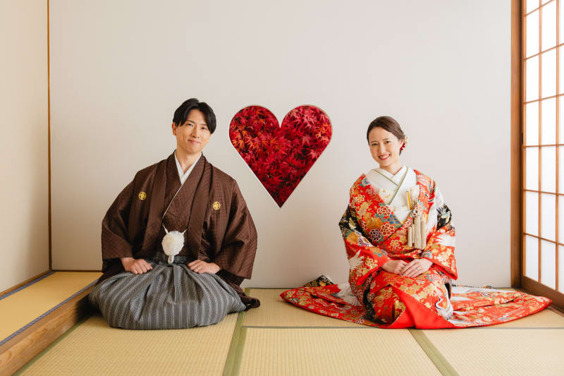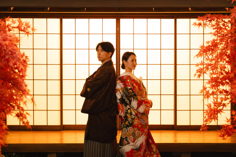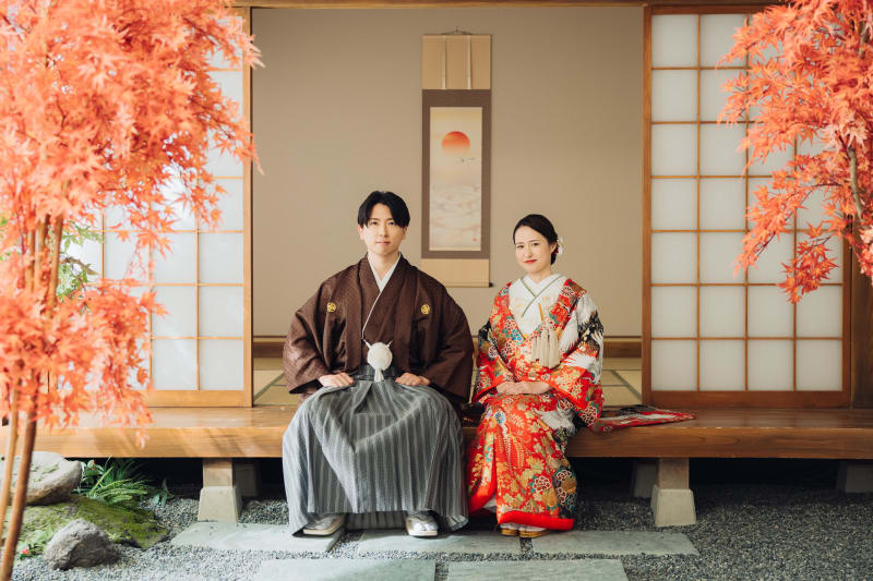 まずは紅葉で、縁側に座ってかっちりとした感じに。