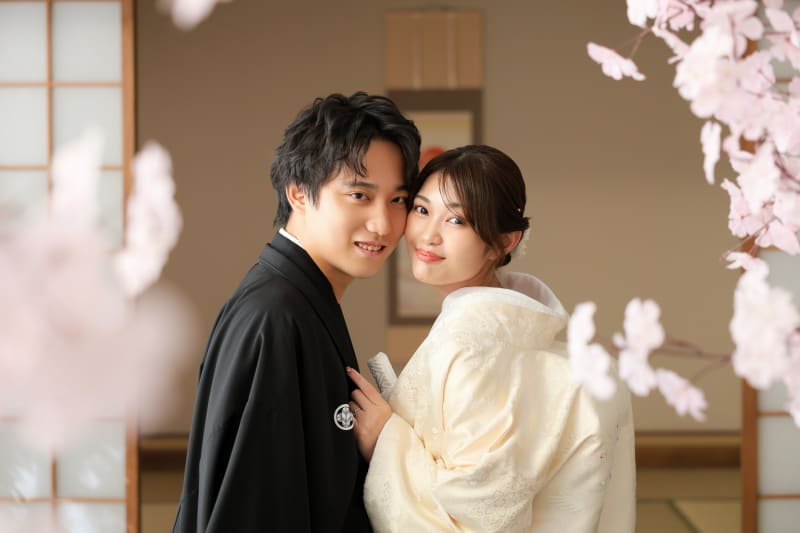 季節を問わず桜や紅葉とお撮りできるのも屋内庭園のポイント!