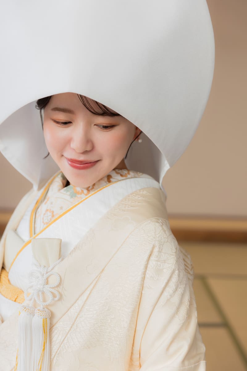 綿帽子には、新郎以外の人に顔を見せないという意味が込められています。