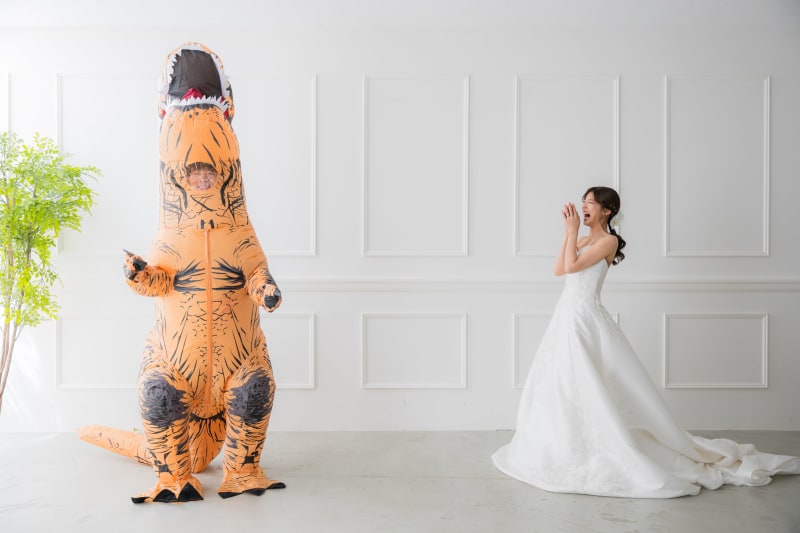 ドレスとタキシードにお着替えしたら、今度はハウススタジオで撮影開始。