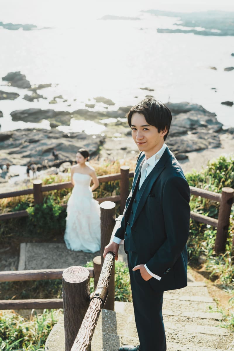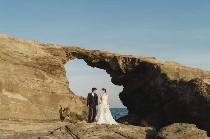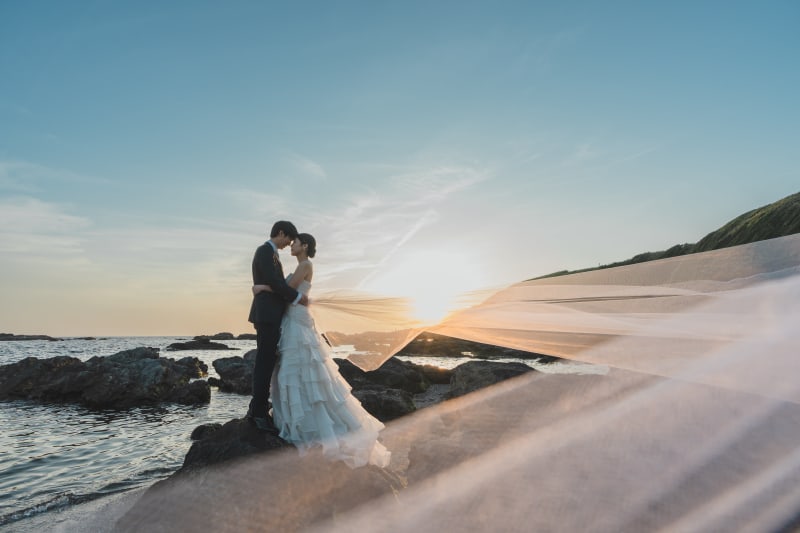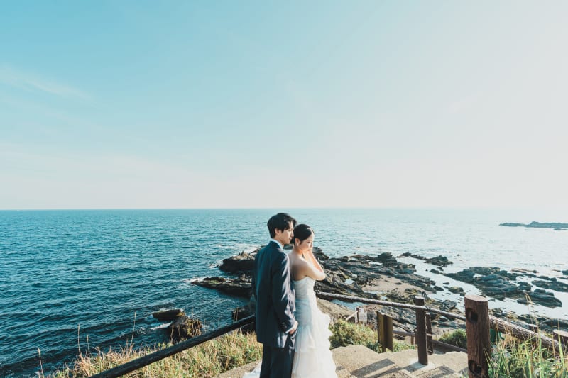 天気もとっても良く、青空と海をキレイに残すことができました。ドレスも際立って、とても綺麗です。