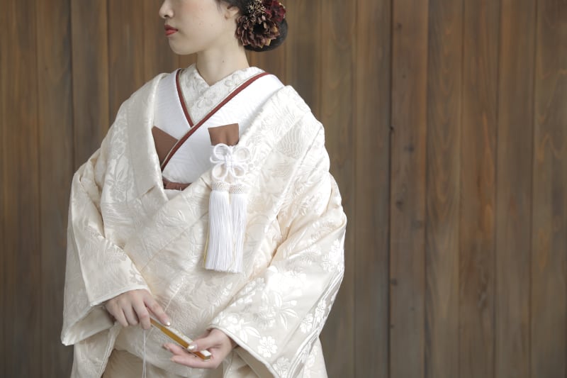 和装小物を濃い色味で統一することで落ち着いた印象にすることができます。