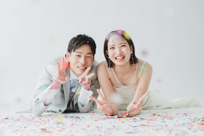 本日は、洋装スタジオでバルーンやコンフェッティをお持ち込みいただいたおふたりの写真を紹介します!