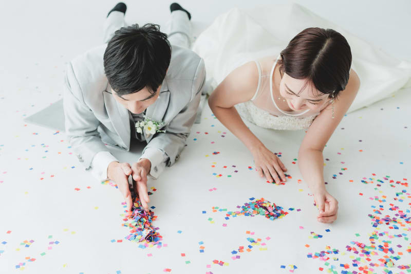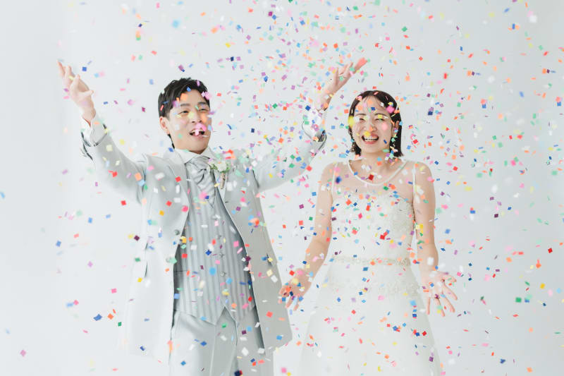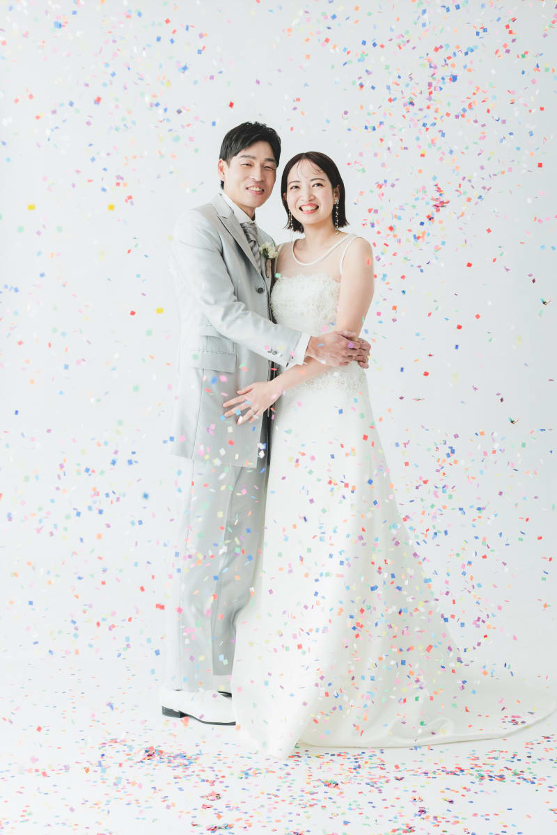 ここから始まるコンフェッティタイム。手元カットを残しておくことで次がどうなるか楽しみになりますよね!