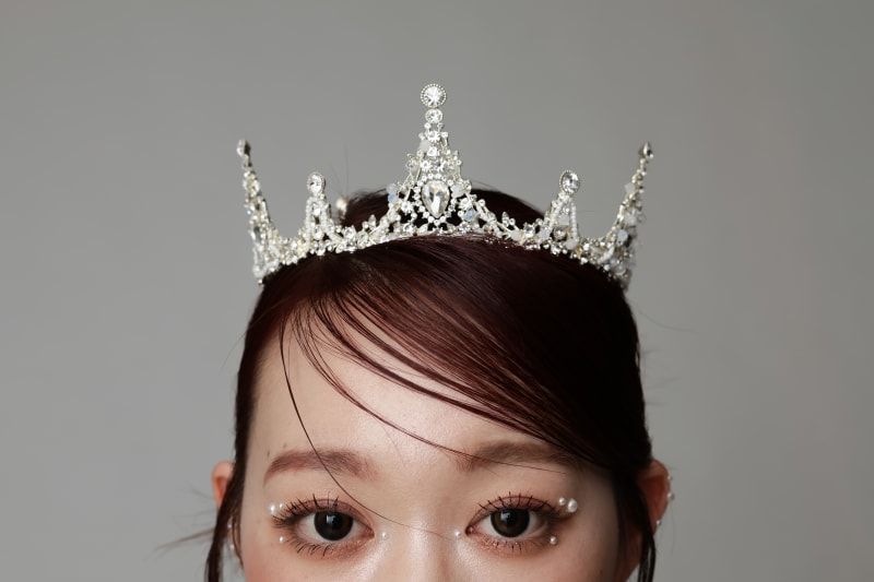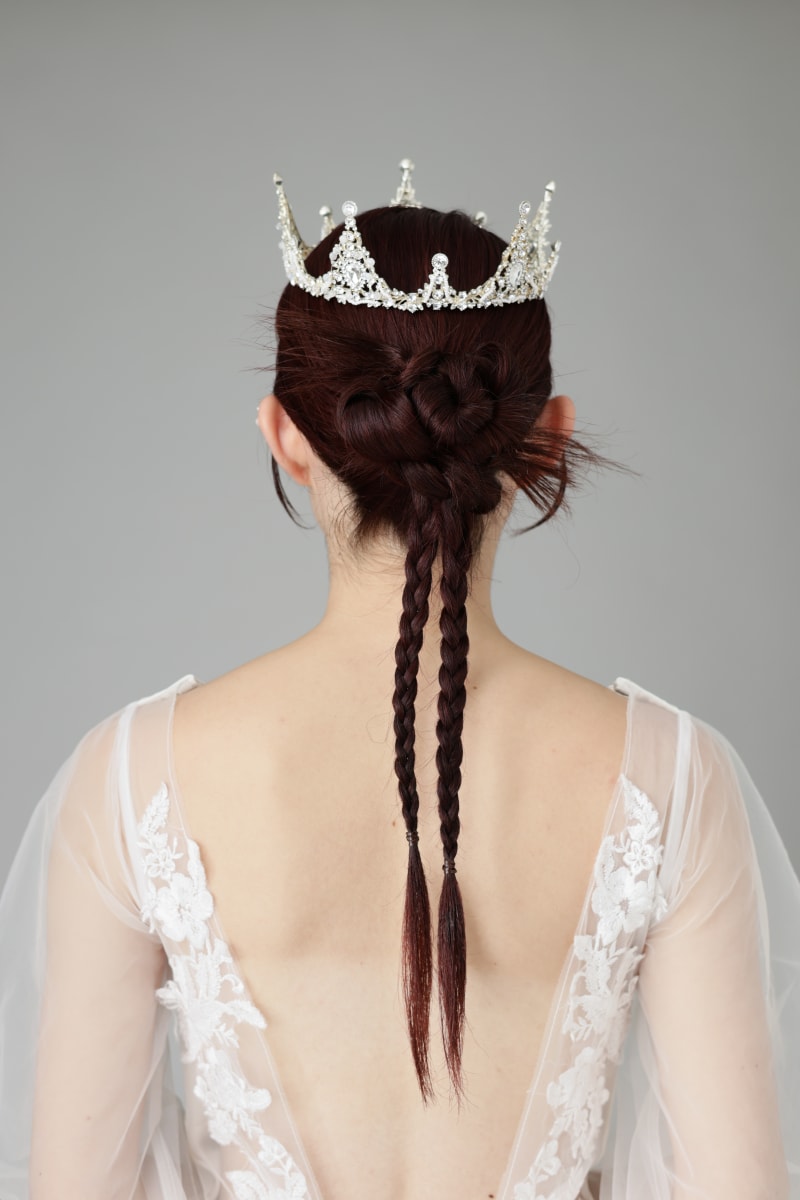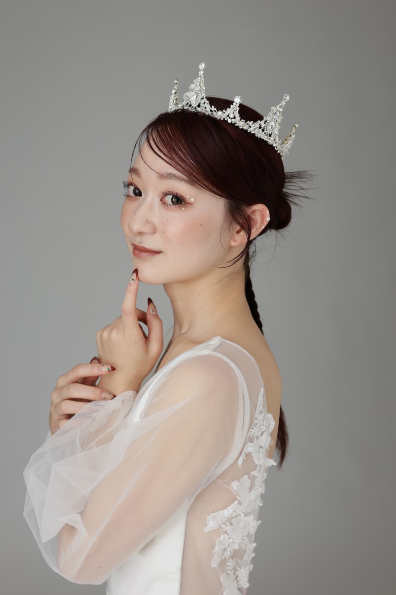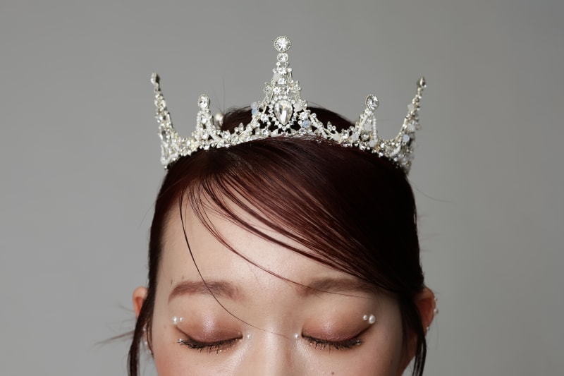 タイトなヘアにクラウンを合わせることで上品な雰囲気になります!