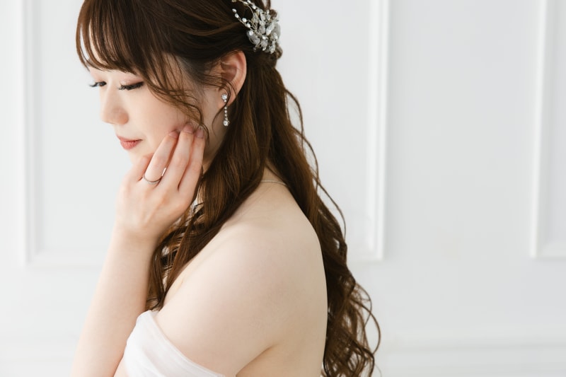ヘアは新婦さんの長い髪を生かしたハーフアップ。