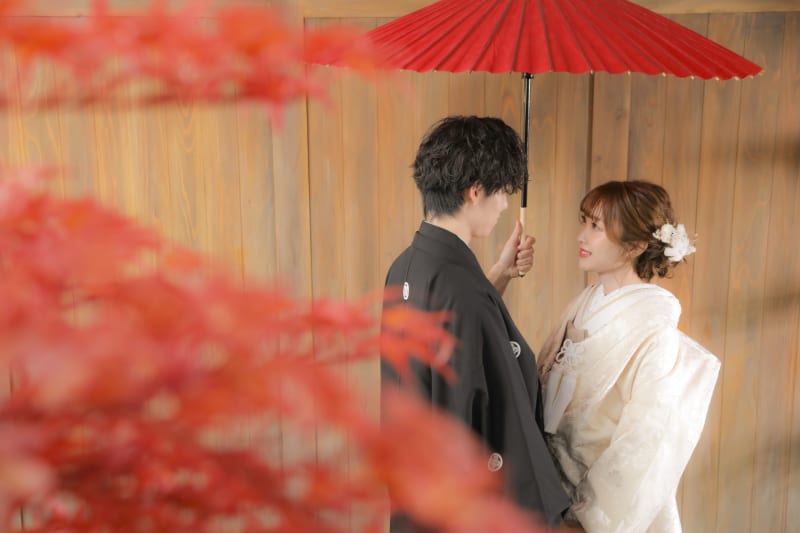 さらに【桜】や【新緑】・【紅葉】といった造花もご準備しておりますので四季を感じる撮影もできます! これから秋婚・冬婚を控えるお客様は紅葉を用いて撮影してみてはいかがでしょうか? 式の準備にも使用していただけますよ!
