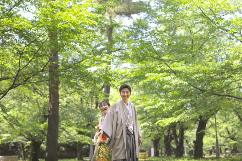 鮮やかな緑に包まれた、和装ロケーションはいかがですか?