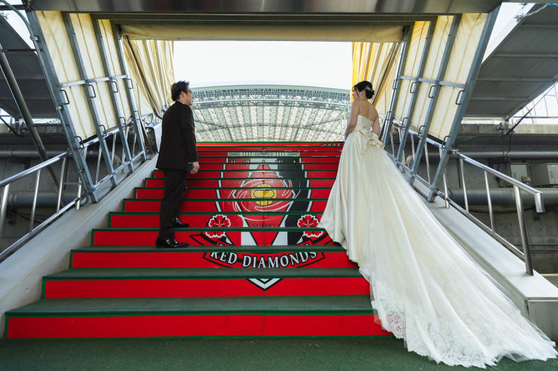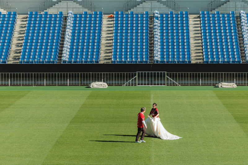 いつも客席から見ているピッチに入っての撮影は、一生の思い出に残ること間違いなしですね!