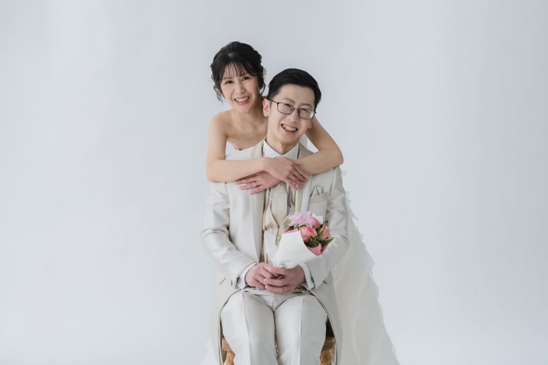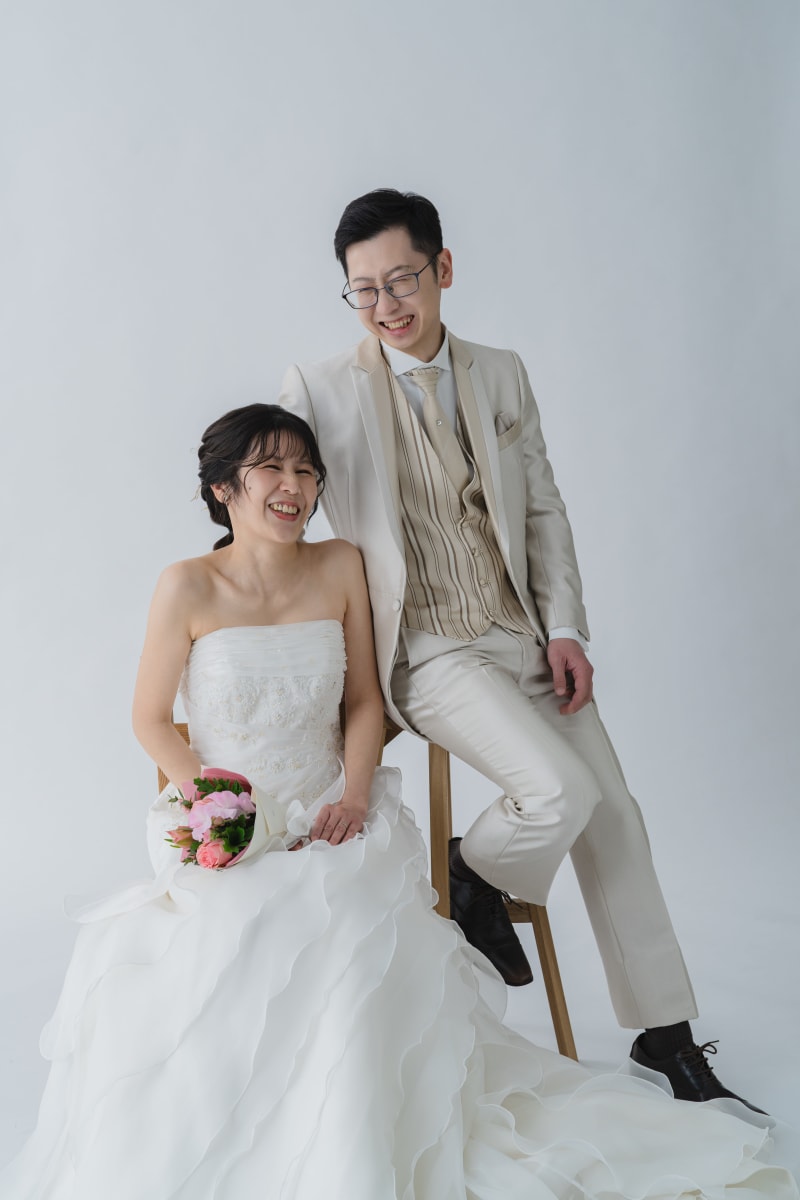 真っ白な無地の背景だからこそお二人らしい写真が残すことができます^^