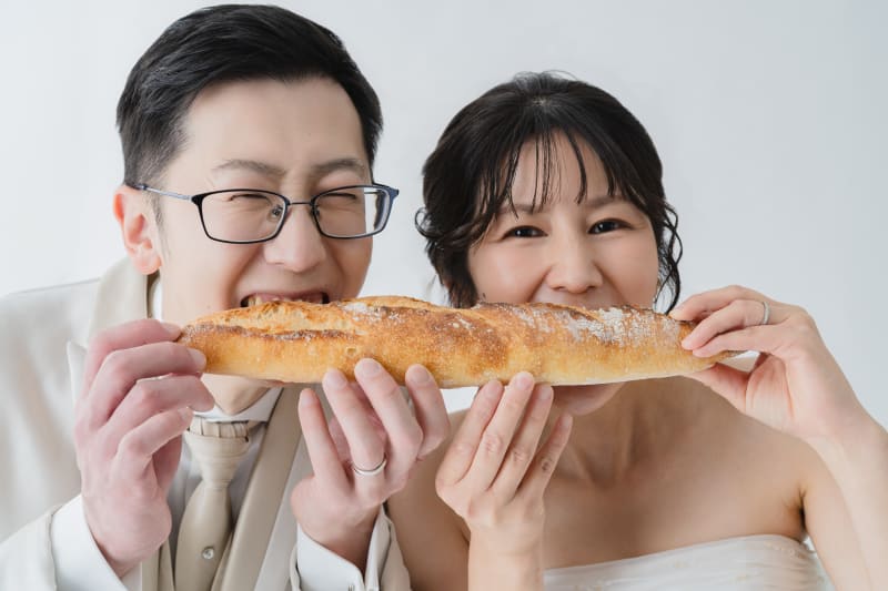 フランスパンにふたり揃ってガブッと♪