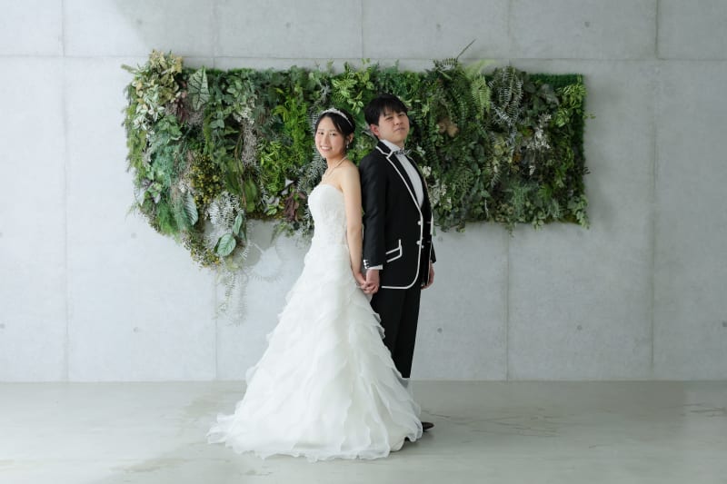 続いてガラッと雰囲気が変わってコンクリートとグリーンがアクセントの背景での撮影です!