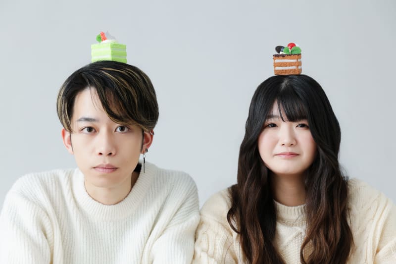 頭にケーキを乗せた、ちょっぴりシュールなお写真も。