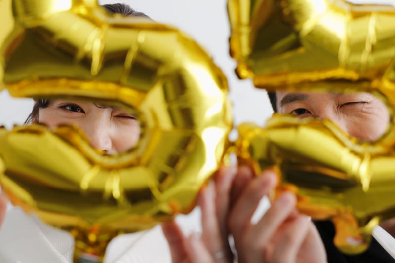 おふたりの入籍日や挙式日のバルーンを持って撮影するのも素敵です◎