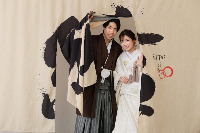 大きなのれんを使ったカットはスタジオならでは!