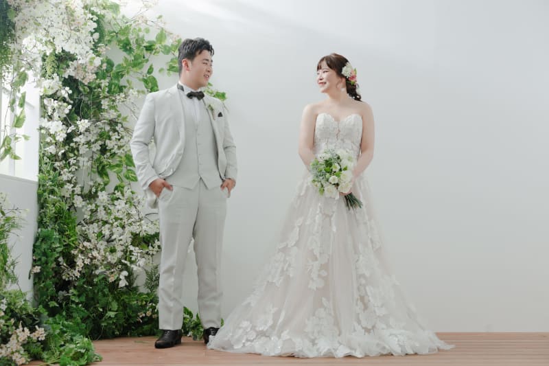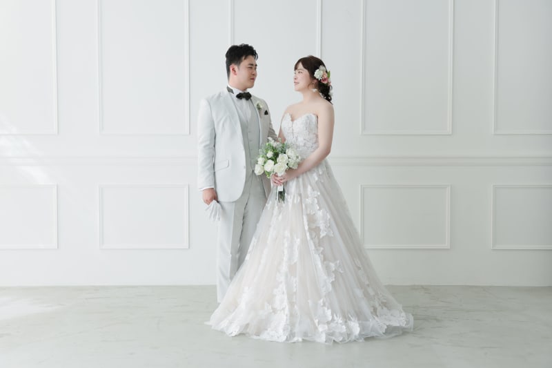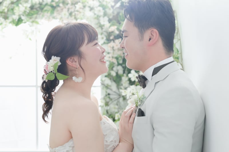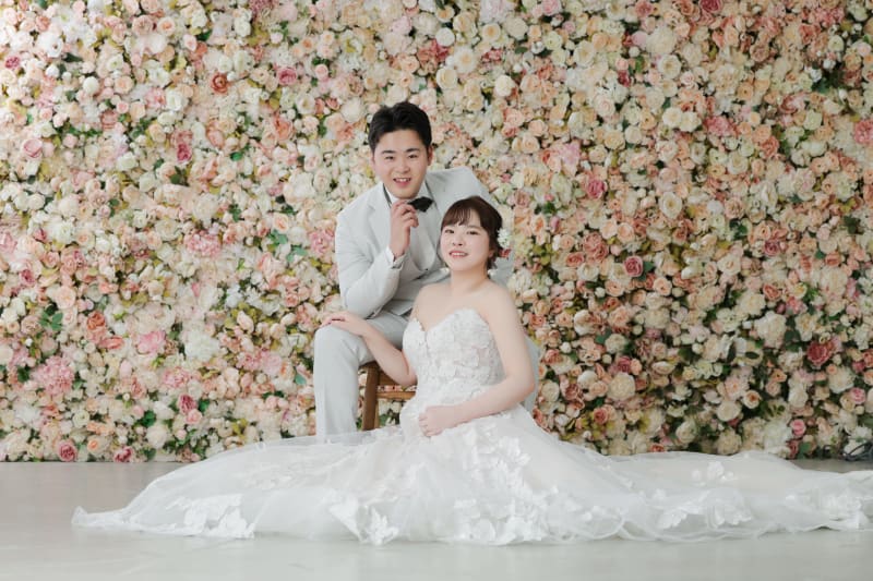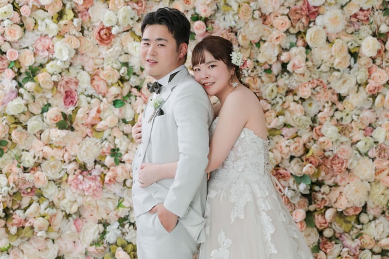 大宮店では、淡いピンクとホワイトが温かく優しい雰囲気のお花で撮影できますよ◎