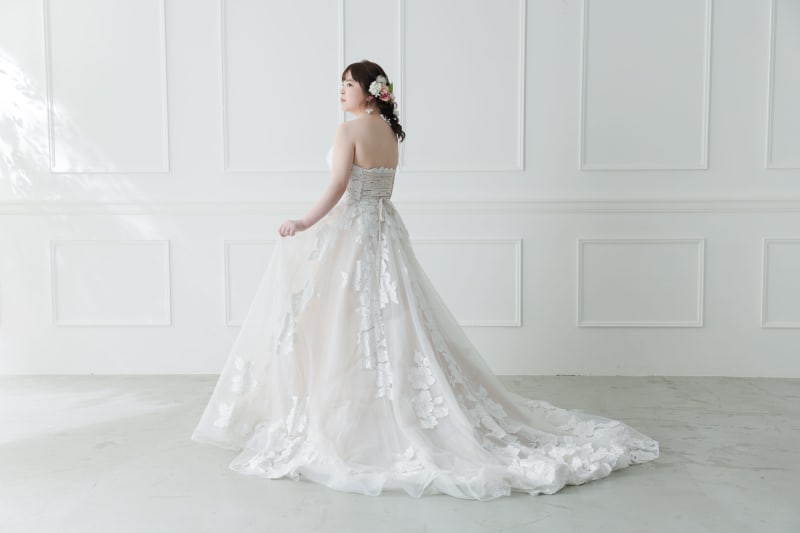 お花の刺繍があしらわれた美しいドレスは透け感も素敵でした♡