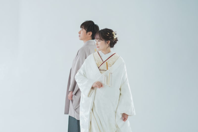 こちらは白無垢にブラウンやベージュのお色味を合わせたコーディネートです。