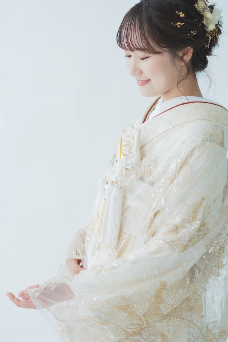 白無垢とはまた違う雰囲気で、小物の色味と相まってとても可愛いですね!
