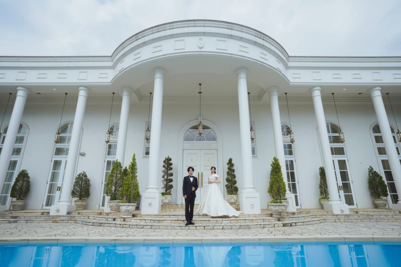 - また、ガーデンには真っ白な邸宅とプールがあり、 白と青のコントラストがとても素敵です!