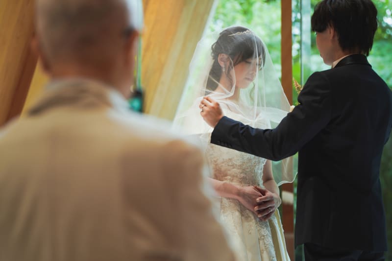 バージンロードを歩く姿や、ベールアップのシーンは 実際の結婚式さながらのお写真ですね!