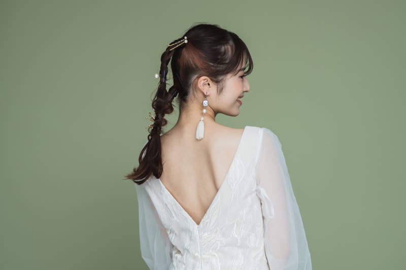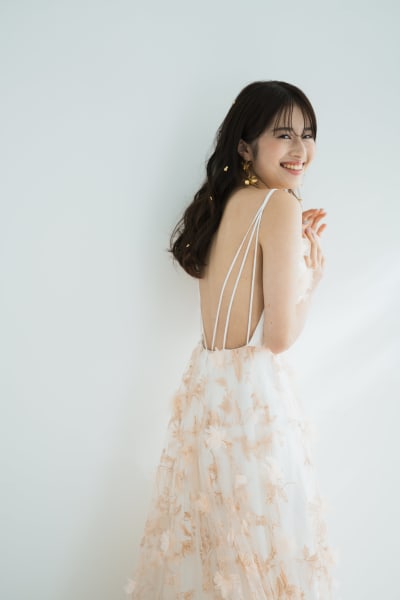 また、ウエディングドレスかカラードレスどっちにしよう…と迷っている方にはこちらも人 気でした^^ 後ろはしっかり開いていて女性らしさをたーーーぷり惹き出せるのもポイントです!