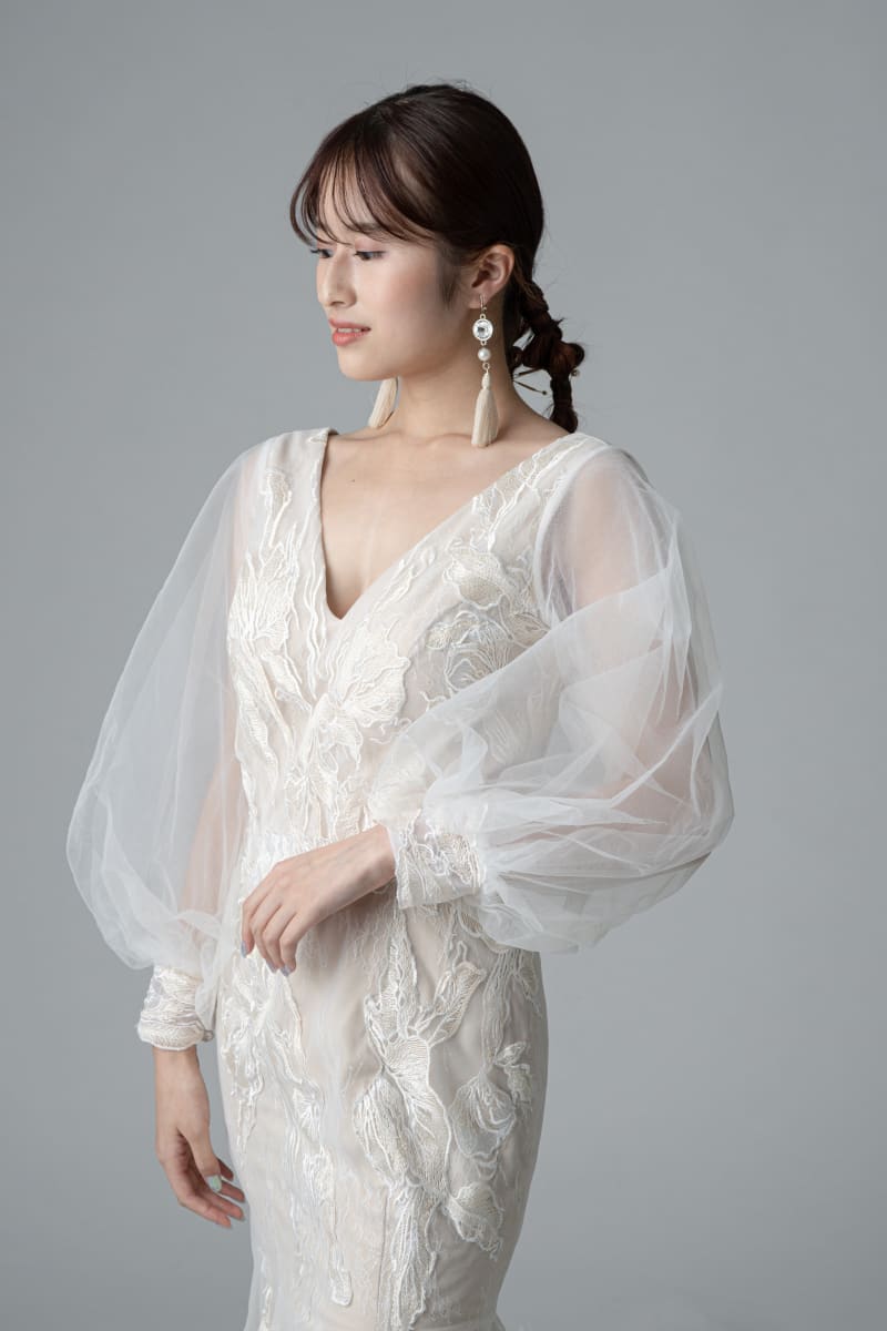 袖ありは着たかったけど結婚式のときは選ばなかったので…というお客様にも好 評で 式とは違う雰囲気の衣装で撮影したい方に是非オ ス ス メです◎◎ しかも今季は大きめの刺繍が入っている事もポイント高!!!!