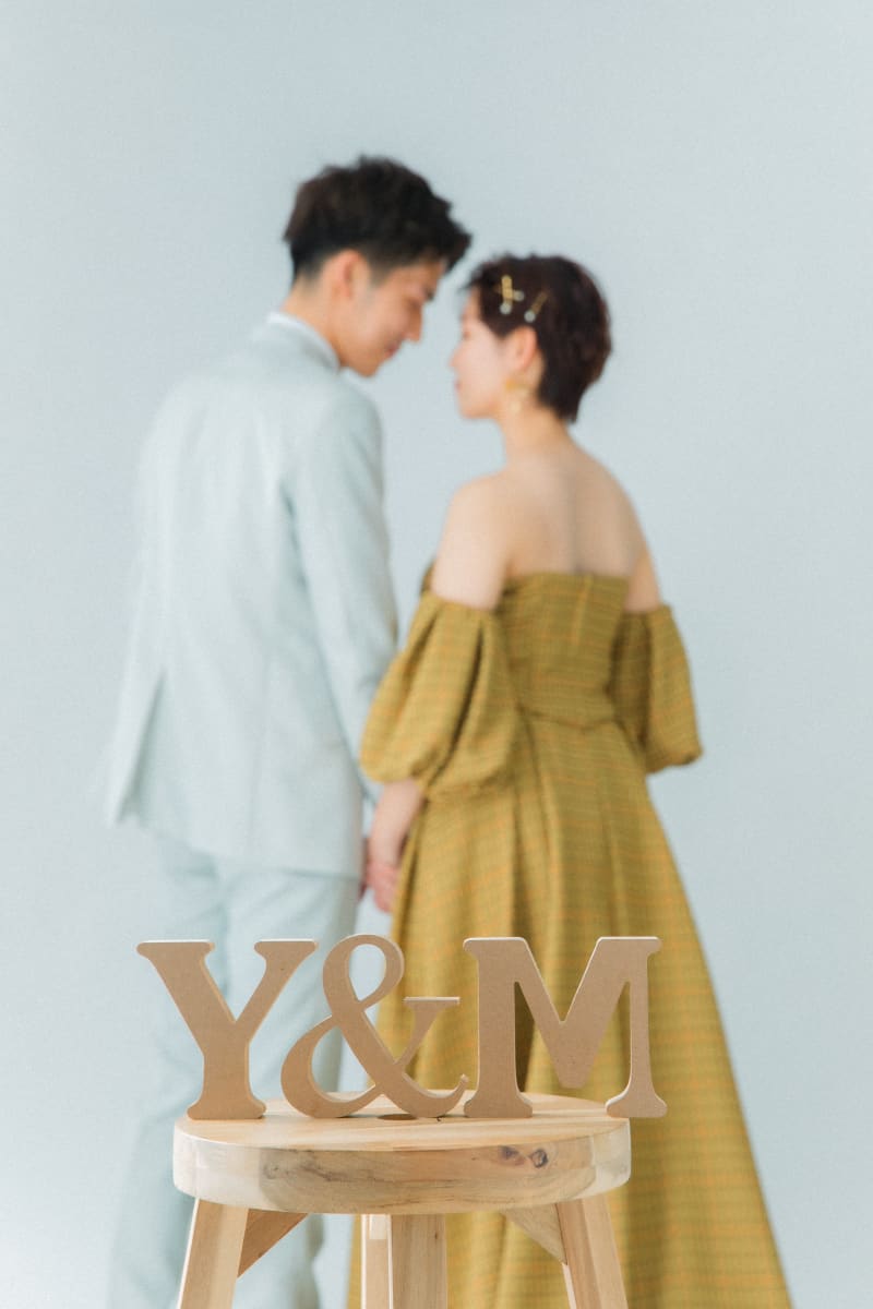 大好きな【洋装スタジオplus】のご紹介です。 今回はカラードレスからのトータルコーディネートが最 高でした! お二人も衣装合わせ後の撮影小物をお考えになる方もいらっしゃるのですが 色味の統一はオ ス ス メです◎