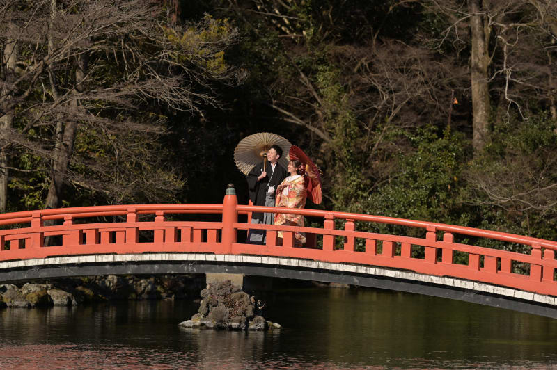 和装撮影ではみなさまこのような大きな太鼓橋をイメージされませんか!?