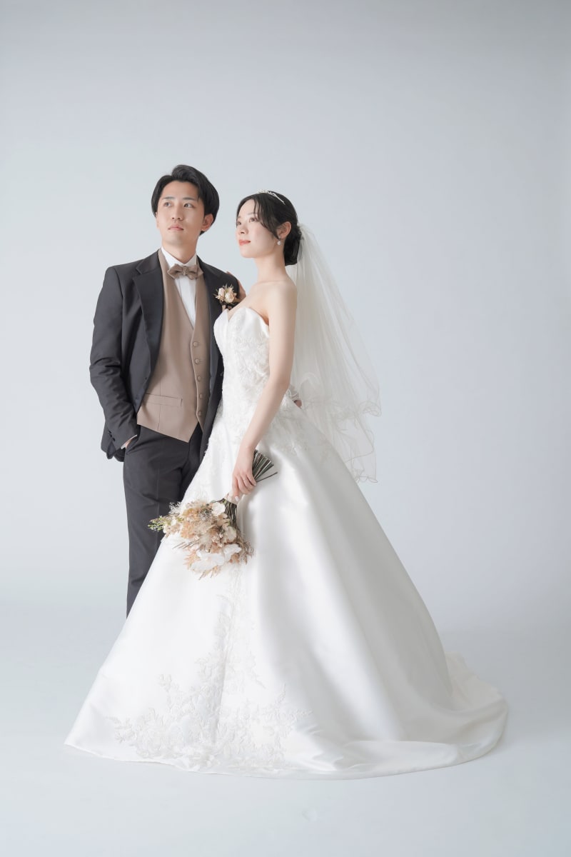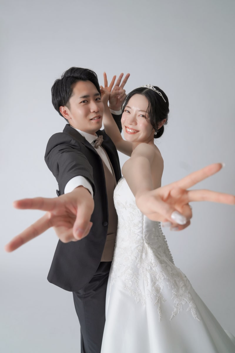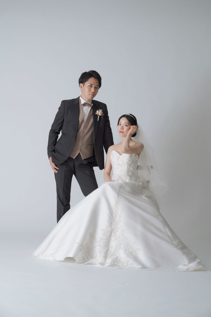 無地の背景だからこそ、シンプルにお二人の表情やドレスがより映えてきますね^^
