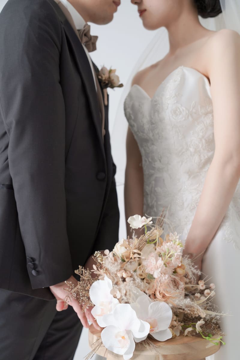 ブーケメインではあるものの、お二人が少し写されていることにより、