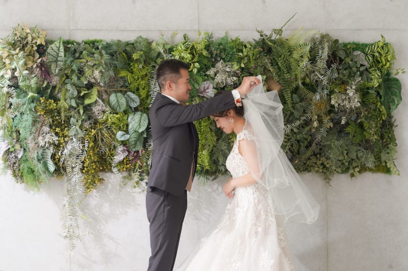 白を基調とした高級感のある背景から、緑の背景でシックに雰囲気満点で撮影することも可能です♪