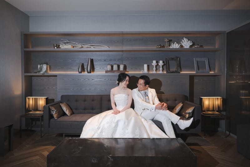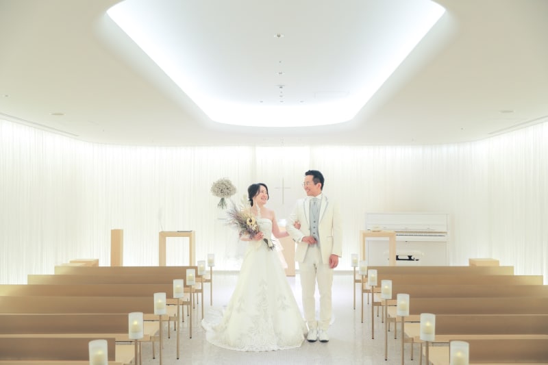 チャペル内での撮影を終えて。 実は待合ロビーもとてもおしゃれなんです♡