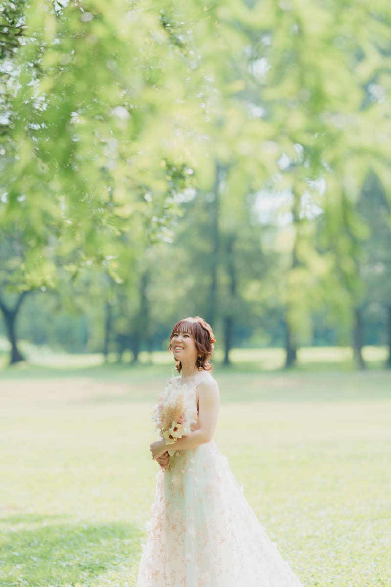 自然いっぱいの公園なのでロケーション撮影ならではのナチュラルなドレスがぴったりでお似合いですね^^