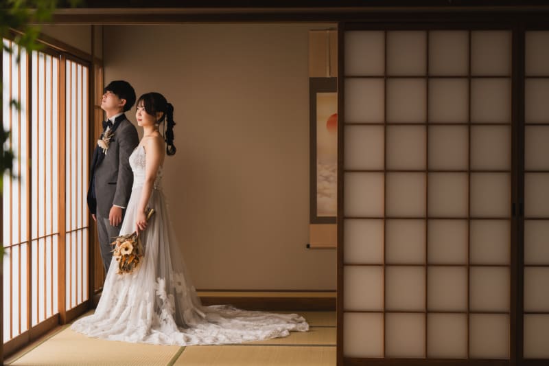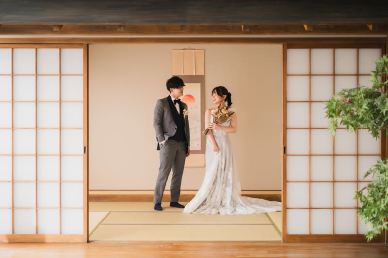 普段はお着物で撮ることが多い庭園スタジオですが、洋装で撮影をすることもできます!