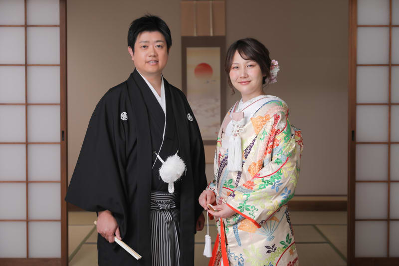 掛け軸の前で扇子を持ってもらい、少しかっちりとしたお写真も!