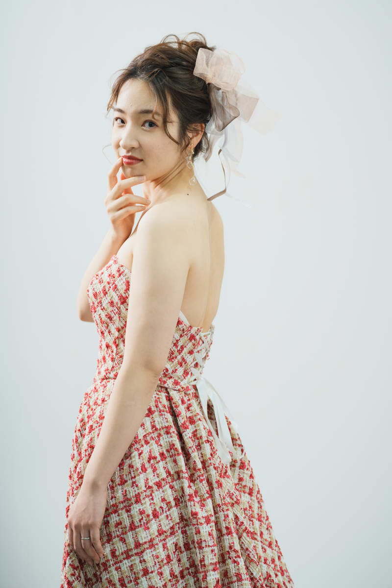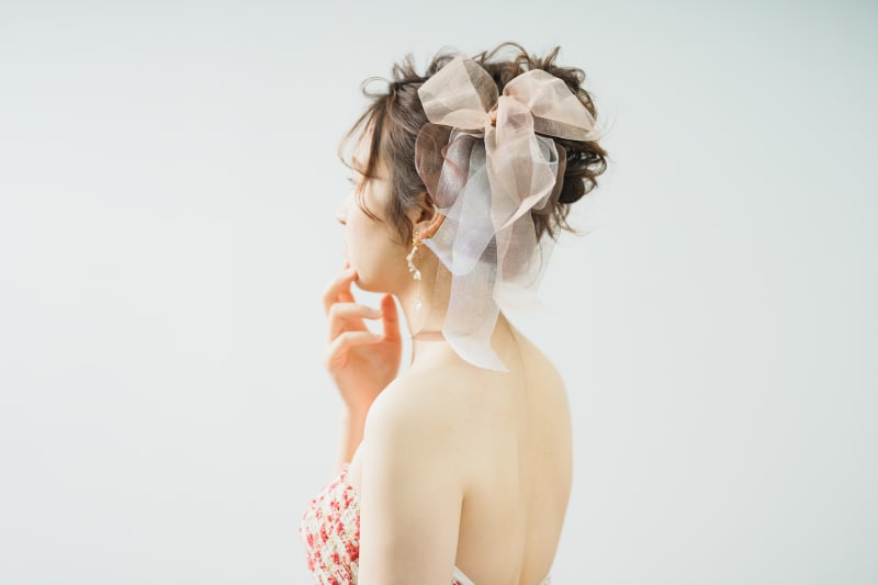 ヘアスタイルはゆるふわのおだんこアレンジです。