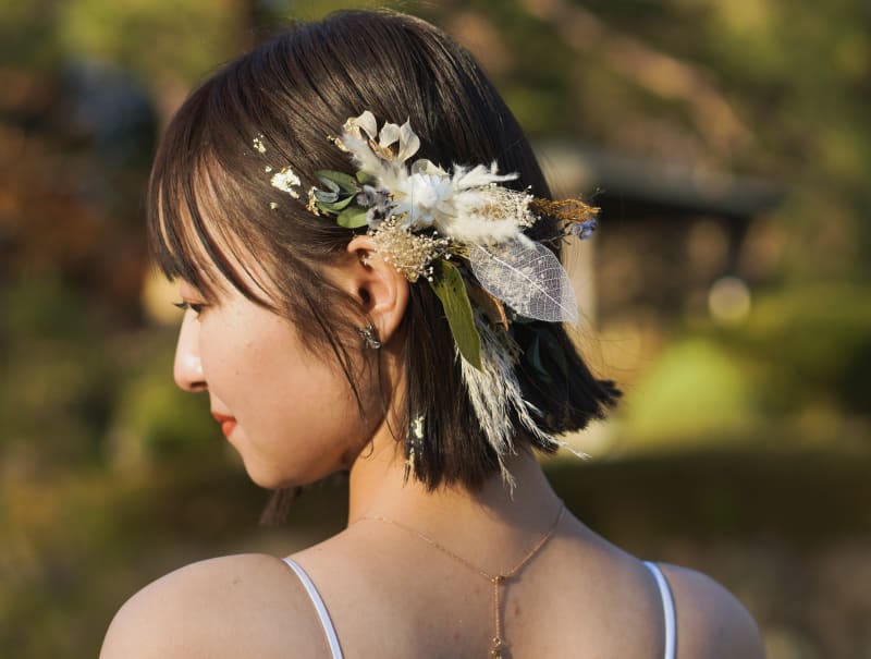 ドライフラワーやアクセサリーにプラスするだけでこなれ感が出ます^^