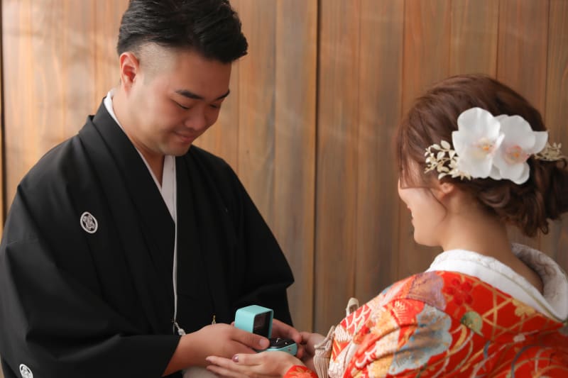 指輪を渡しているお写真もいい感じです!