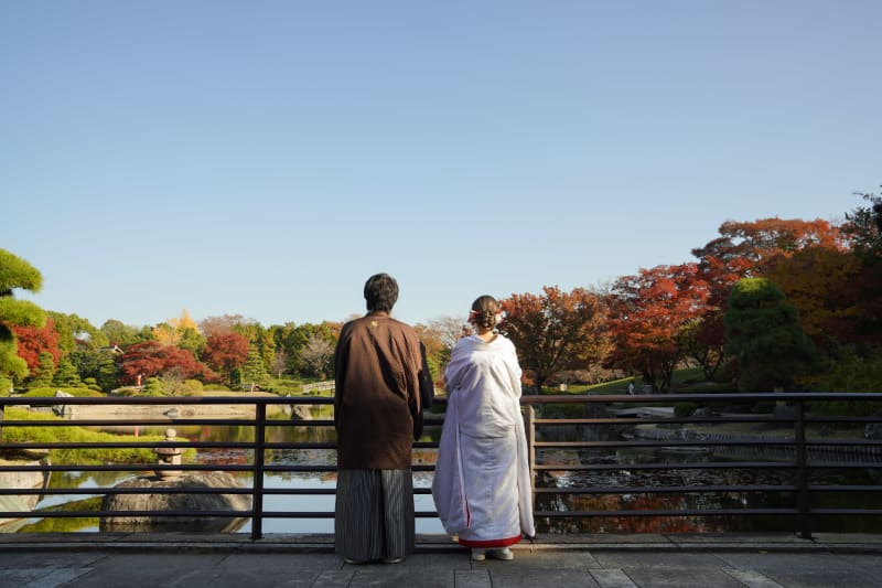 そんな園内を一望できる場所で、お二人に紅葉を眺めていただきました。