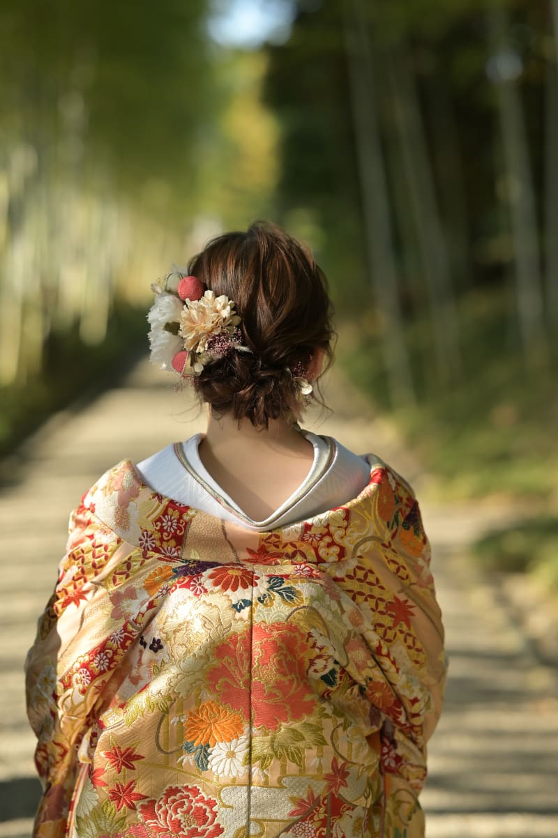 和装小物やヘア飾りでも雰囲気を変えることができるので