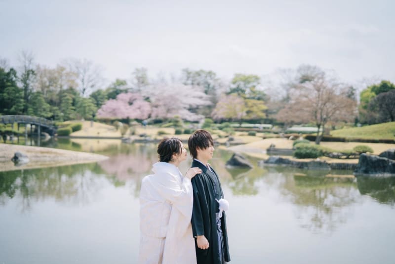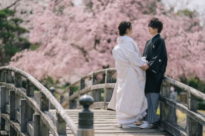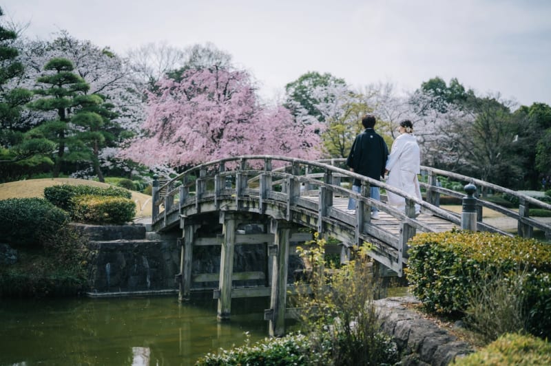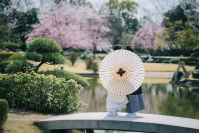 日本文化の美しさと四季折々の風情を楽しめる日本庭園で、これから始まる桜での撮影はいかがでしょうか?
