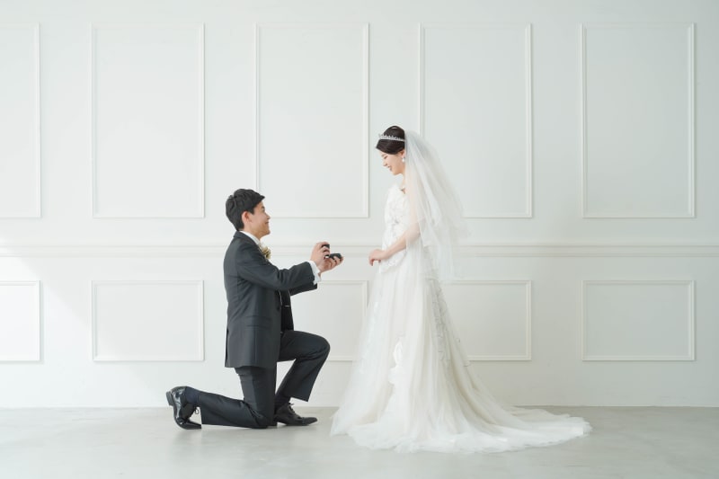 お二人とも衣装を着た状態で、プロポーズのシーンを再現していただきました。