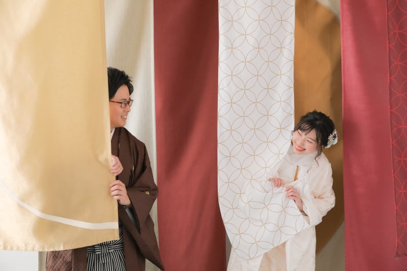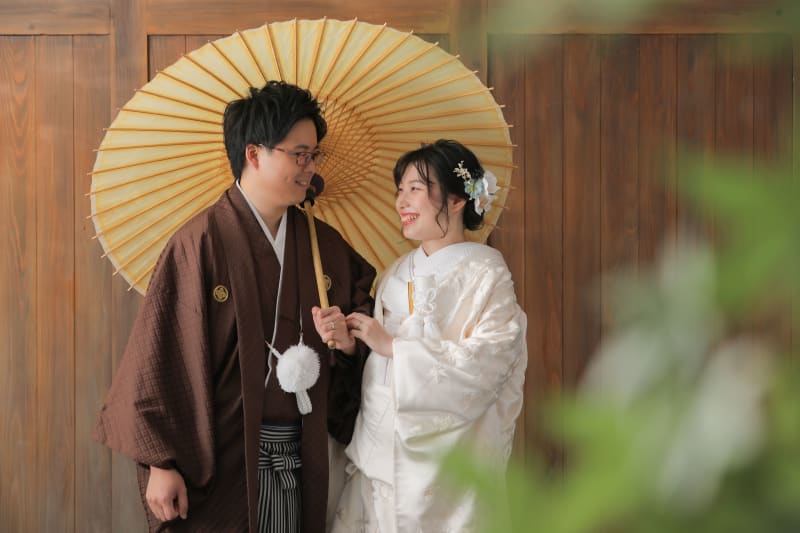 こんにちは! 本日は可愛い雰囲気のお二人に合わせたお写真を 紹介いたします。 まずは和装といえば!のかちっとしたカットから。